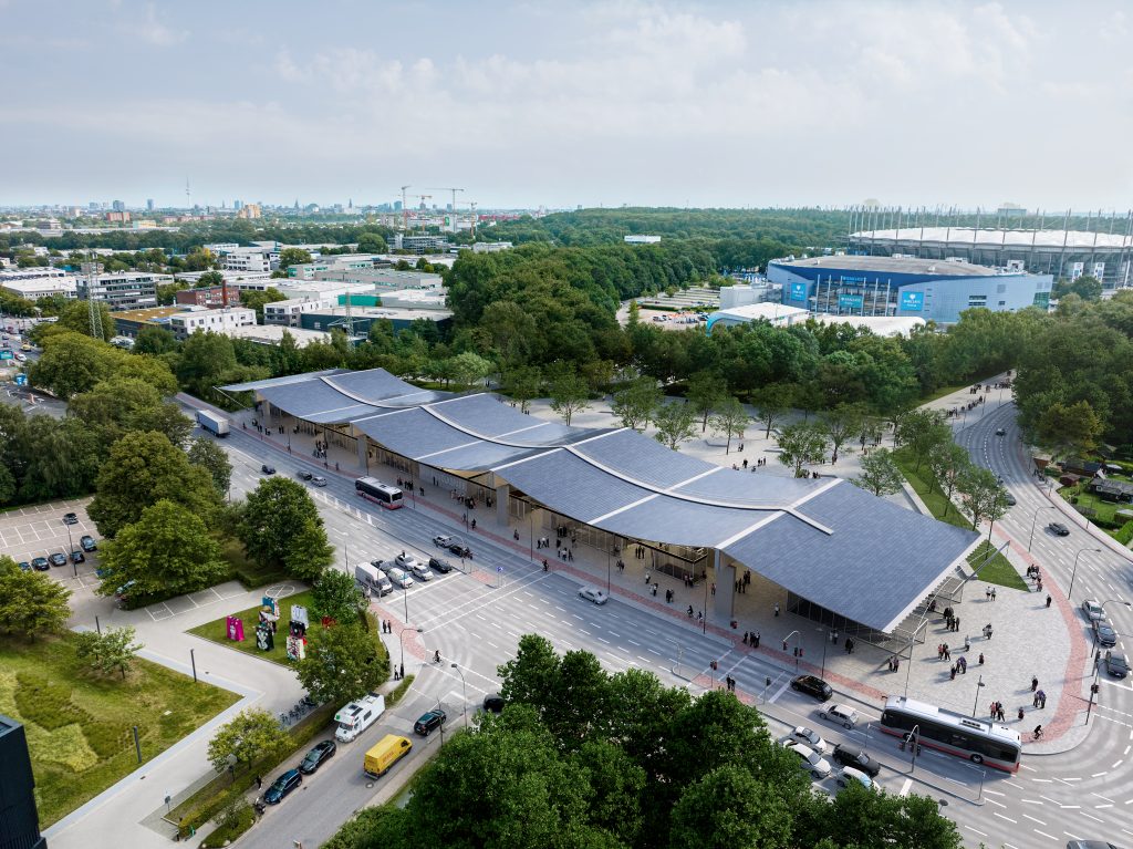Le projet établit de nouveaux standards dans l’usage innovant du bois, matériau dont il révèle la puissance expressive et technique. Par sa présence emblématique, le toit devient un repère urbain, renforçant l’identité de la station auprès de ses usagers. La station ARENEN constitue le point de départ de l’axe des arènes, reliant métro, patinoire, Barclays Arena, Volksparkstadion et parc d’Altona. L’aménagement du parcours, combine convivialité quotidienne et capacité à accueillir des foules.